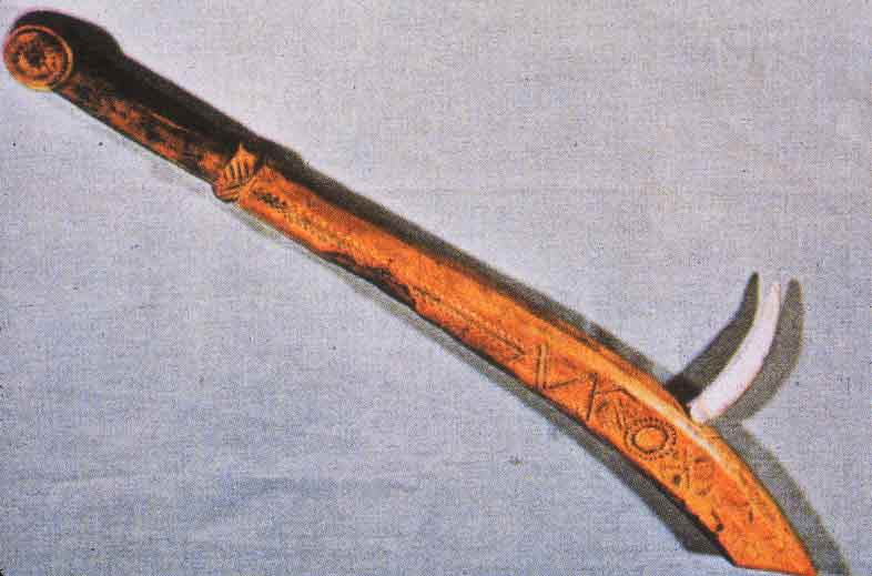 61 - Peine con puas de madera de chonta anudadas y embreadas en uno de sus extre...