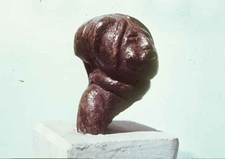 90 - Cabeza antropomorfa de madera de balsa que forma parte de un bastón. Tiene...
