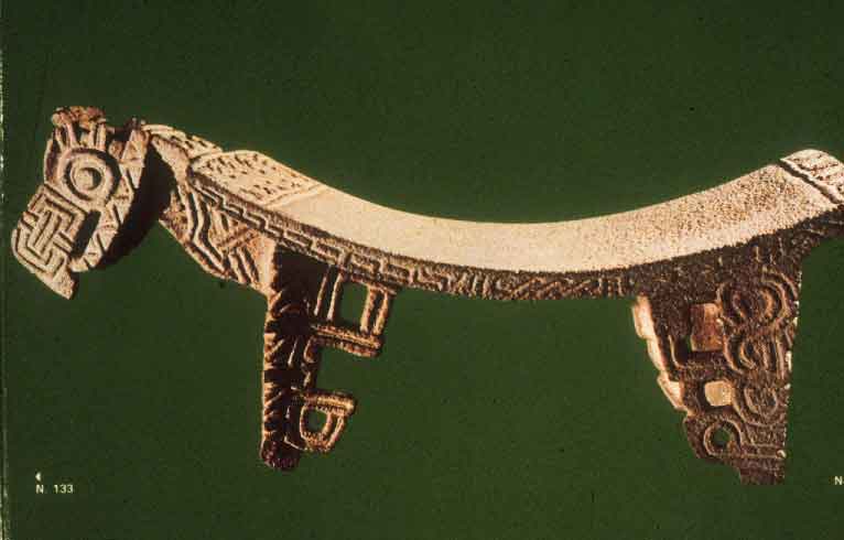 2186 - Rompecabezas realizado en madera con decoraciones de tipo inciso en las que...