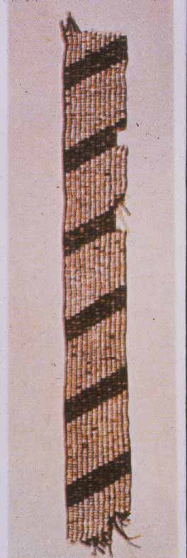9 - Faja rectangular tejida en bandas paralelas negras y blancas, rematada en ...
