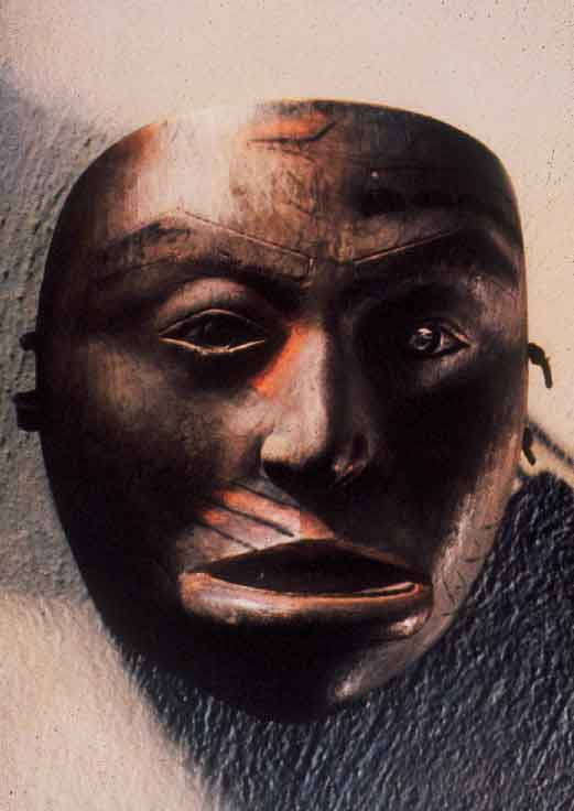 90 - Cabeza antropomorfa de madera de balsa que forma parte de un bastón. Tiene...