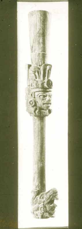 90 - Cabeza antropomorfa de madera de balsa que forma parte de un bastón. Tiene...