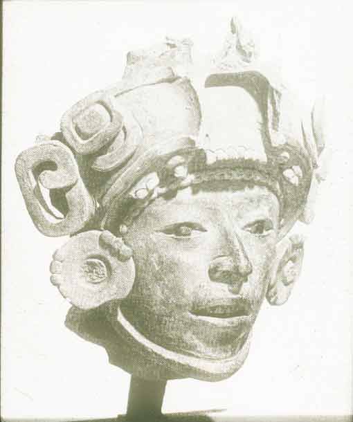 90 - Cabeza antropomorfa de madera de balsa que forma parte de un bastón. Tiene...