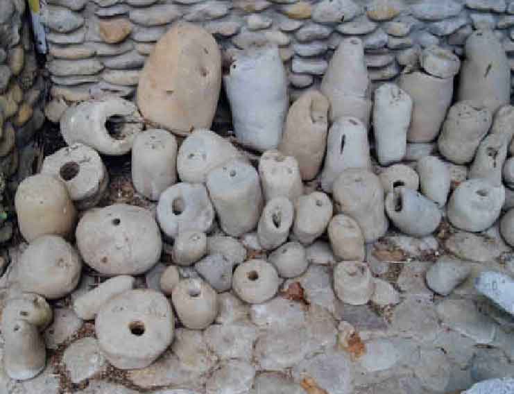 56 - Tortero de ceramica de forma bicónica, con orificio central para la inser...