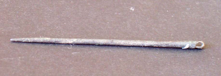 2211 - Pequeño fragmento de una fina placa, dorada por las dos caras, aparecida e...