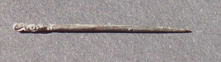 2211 - Pequeño fragmento de una fina placa, dorada por las dos caras, aparecida e...