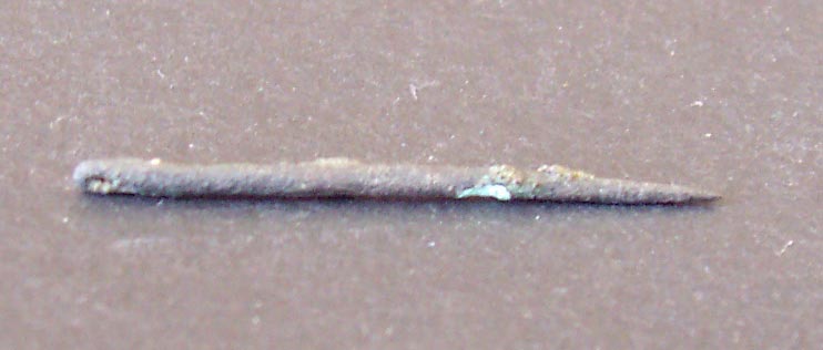 2211 - Pequeño fragmento de una fina placa, dorada por las dos caras, aparecida e...
