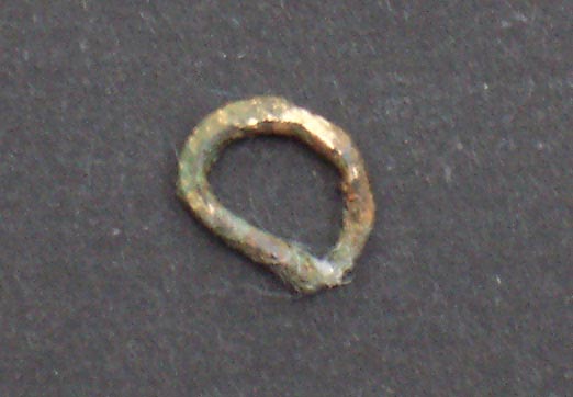 2211 - Pequeño fragmento de una fina placa, dorada por las dos caras, aparecida e...