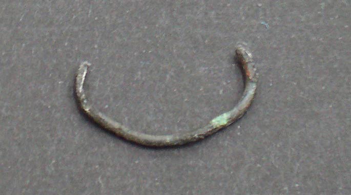 2211 - Pequeño fragmento de una fina placa, dorada por las dos caras, aparecida e...