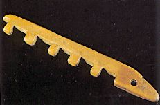 2211 - Pequeño fragmento de una fina placa, dorada por las dos caras, aparecida e...