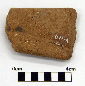 2257 - Pie de vasija cerámica fragmentado que representa una figura sólida sede...