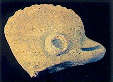 2246 - Fragmento de vástago de pie vasija sólida que representa una cabeza human...