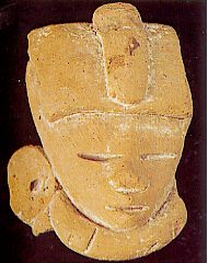 2246 - Fragmento de vástago de pie vasija sólida que representa una cabeza human...