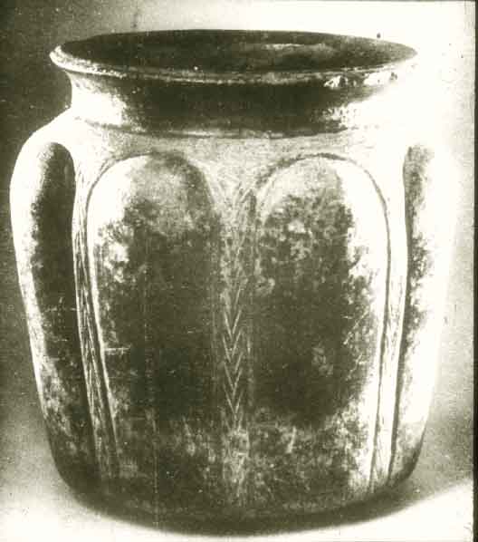 2183 - Recipiente cerámico con forma de urna y decoración incisa de tipo geométrico.