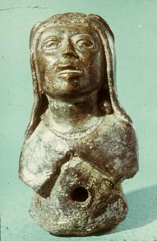 2246 - Fragmento de vástago de pie vasija sólida que representa una cabeza human...