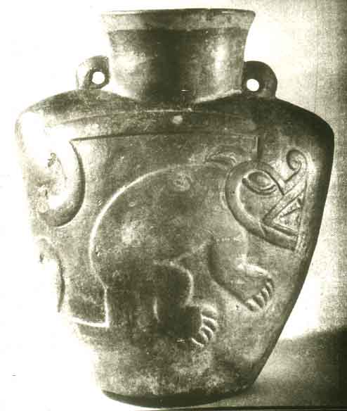 2183 - Recipiente cerámico con forma de urna y decoración incisa de tipo geométrico.
