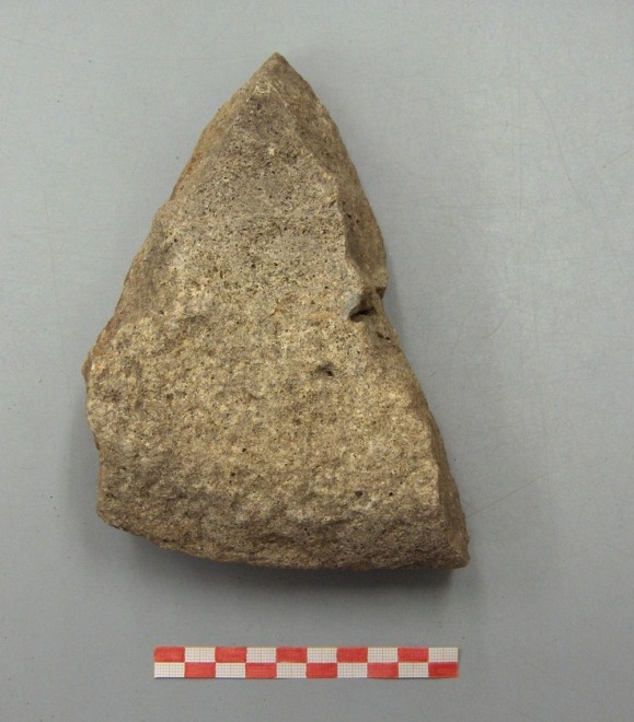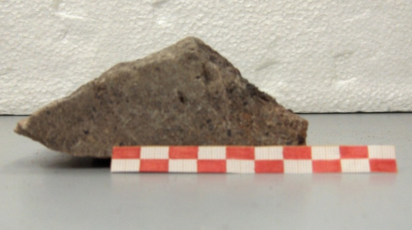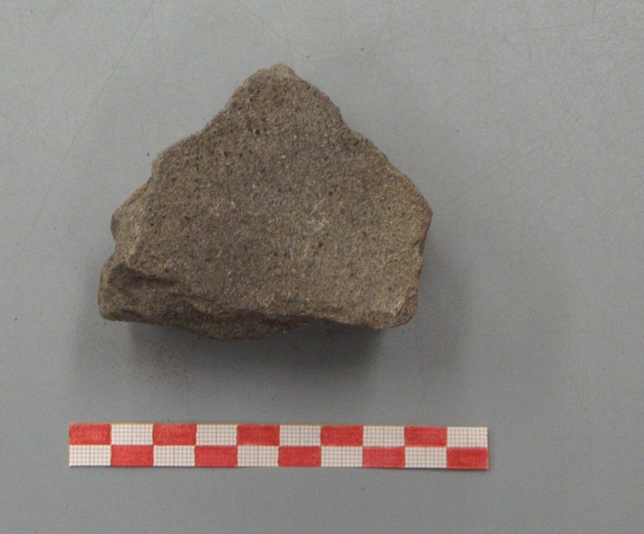 2257 - Pie de vasija cerámica fragmentado que representa una figura sólida sede...