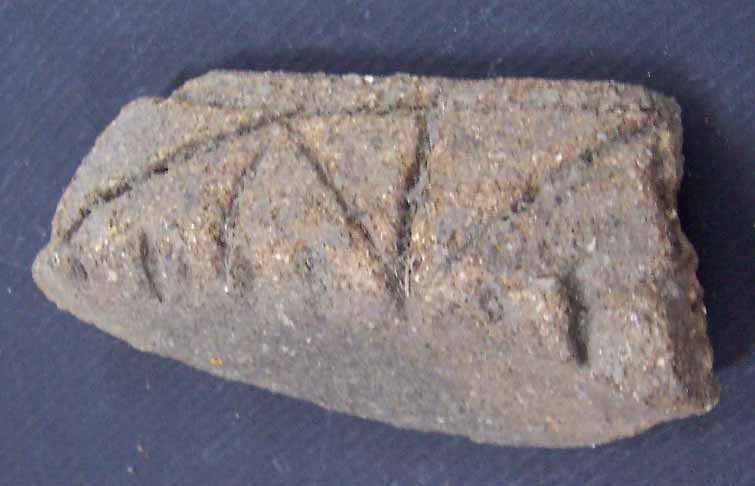 2189 - Plato cerámico trípode con decoración geométrica pintada y excisa.