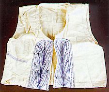 26 - Camisa o Huwalli Cayapa de hilo azul realizada mediante la unión de dos pi...