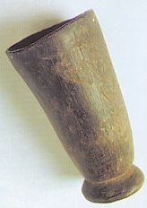 85 - Vasija con forma de vaso troncocónico de borde plano, cuerpo convergente h...