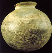 68 - Vasija de cerámica de borde evertido, cuello recto, cuerpo globular y ba...