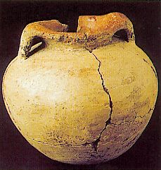 68 - Vasija de cerámica de borde evertido, cuello recto, cuerpo globular y ba...