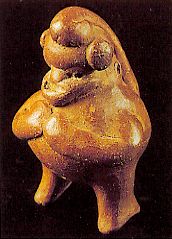 50 - Figura de cerámica marrón representando una escena de la vida cotidiana. ...