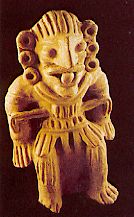 32 - Figura antropomorfa esquemática con incrustaciones de avalorios (rojo y ne...
