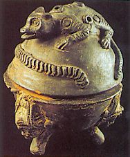 2183 - Recipiente cerámico con forma de urna y decoración incisa de tipo geométrico.