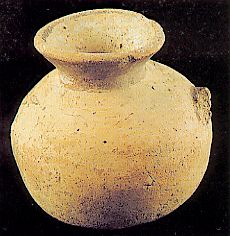 68 - Vasija de cerámica de borde evertido, cuello recto, cuerpo globular y ba...