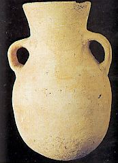 76 - Vasija con forma de copa de pasta de color crema, borde recto, cuerpo esf...