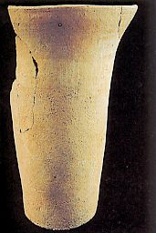 76 - Vasija con forma de copa de pasta de color crema, borde recto, cuerpo esf...