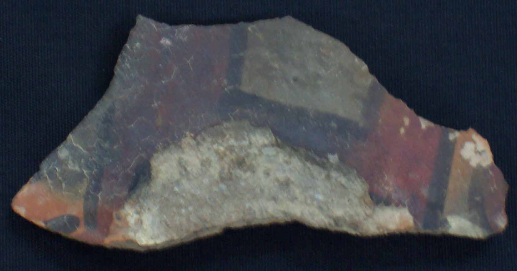 2189 - Plato cerámico trípode con decoración geométrica pintada y excisa.