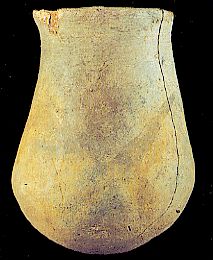 68 - Vasija de cerámica de borde evertido, cuello recto, cuerpo globular y ba...
