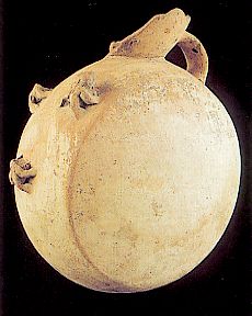 48 - Instrumento musical. Campanilla de cerámica de pastas grises que represent...