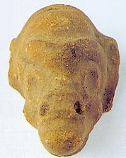 2246 - Fragmento de vástago de pie vasija sólida que representa una cabeza human...