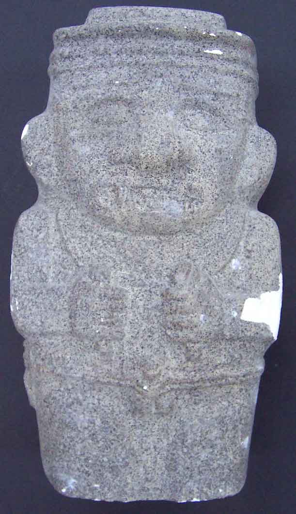 32 - Figura antropomorfa esquemática con incrustaciones de avalorios (rojo y ne...