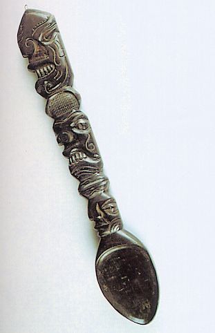 3 - Cucharón formado por la mitad en sección de una cucurbita.Cucharón forma...