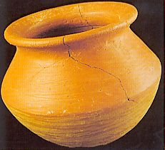68 - Vasija de cerámica de borde evertido, cuello recto, cuerpo globular y ba...