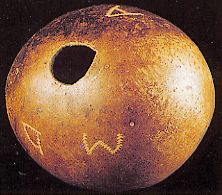 87 - Pequeña pipa realizada con la cáscara de un fruto perforada por dos sitio...