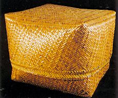 88 - Soplillo de rampida de forma romboidal, tejido en espiga, con mango para a...