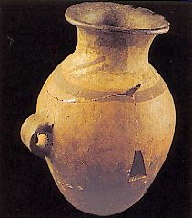 68 - Vasija de cerámica de borde evertido, cuello recto, cuerpo globular y ba...
