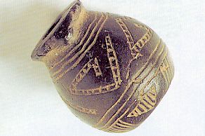 2189 - Plato cerámico trípode con decoración geométrica pintada y excisa.