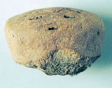 56 - Tortero de ceramica de forma bicónica, con orificio central para la inser...