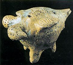 48 - Instrumento musical. Campanilla de cerámica de pastas grises que represent...