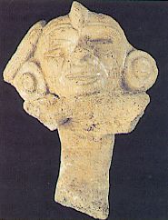 90 - Cabeza antropomorfa de madera de balsa que forma parte de un bastón. Tiene...
