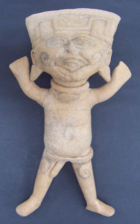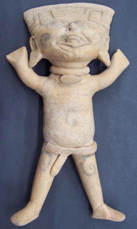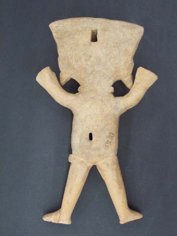 32 - Figura antropomorfa esquemática con incrustaciones de avalorios (rojo y ne...