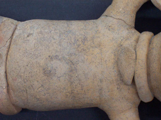 2220 - Fragmento del vástago sólido del pie de una vasija cerámica que represen...