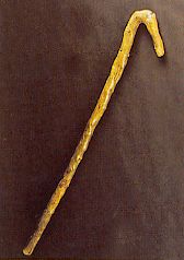 90 - Cabeza antropomorfa de madera de balsa que forma parte de un bastón. Tiene...