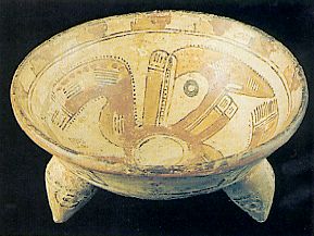 2189 - Plato cerámico trípode con decoración geométrica pintada y excisa.